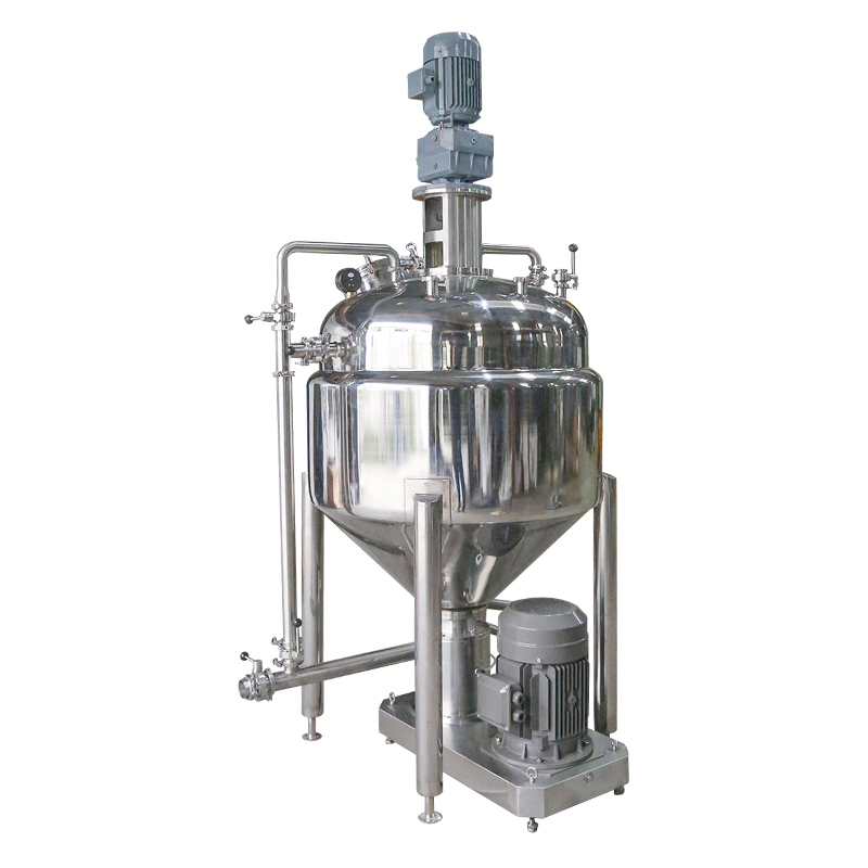 外循环均质系统是核心的,它集吸入、泵送、分散、以及CIP在线清洗多种功能于一身。两级的泵体设计让均质系统不仅可以提供物料搅拌的动力还可以提供强大的泵送能力,对高粘稠物料同样适用。外循环均质系统让水相和油相直接在均质系统中先乳化再被泵送到反应釜中搅拌,这样可以避免很多传统工艺的缺陷和不足。